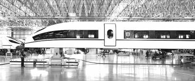 在中车长客高速动车组制造中心,工人使用气垫船搬运一辆高速动车。新华社记者 张楠摄