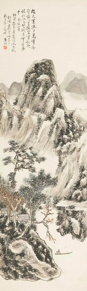 吴昌硕 峰削云树图 绫本立轴 尺寸:128×41cm