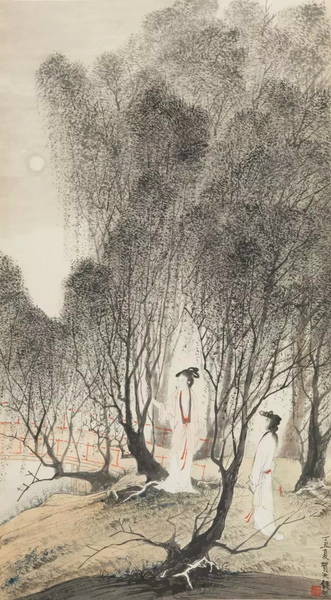 贺天健 玩月图 纸本立轴 1937年 尺寸:106×58cm
