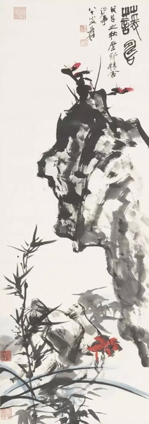 张大千 萱寿图 纸本立轴 尺寸:120.5×43cm