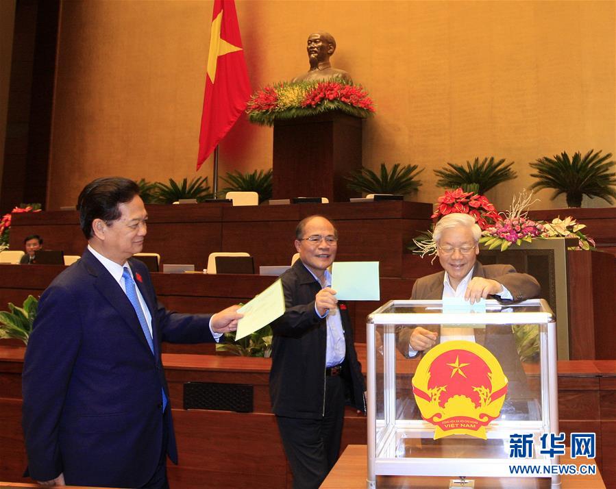 越南国家主席陈大光当天上午将免去阮晋勇政府总理职务文件递交国会。国会在进行讨论后,当天下午以无记名投票方式进行表决,在486张有效票中,418票赞同免去阮晋勇政府总理职务。