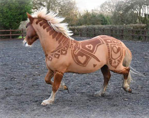 据悉,梅洛迪是一名专门修剪马毛的理发师。起初他只是在马背上修剪出一些星星、爱心等简单样式的图案,后来的图案变得复杂又富于设计。