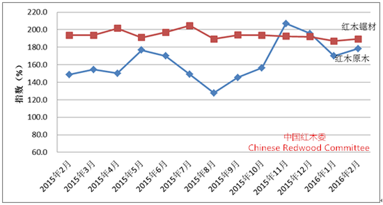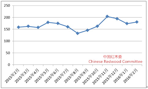 关键词:2016年2月份 中国红木进口 综合价格指数