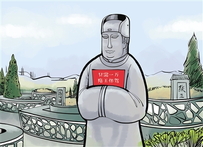广西桂林市靖江王陵是国家级重点文物?;さノ唬⒈还伊腥胧着脊乓胖饭?。但现在却被一座座私坟和随之而来的祭扫大军淹没。2004年,?;で谟胁坏?万座私坟,到2012年已经增长到了6万座以上。村民成群结队推销墓地,交1万多元就能“入驻”皇室风水宝地,还能开具盖有公章的“收据”。(4月6日新华社)漫画/勾犇