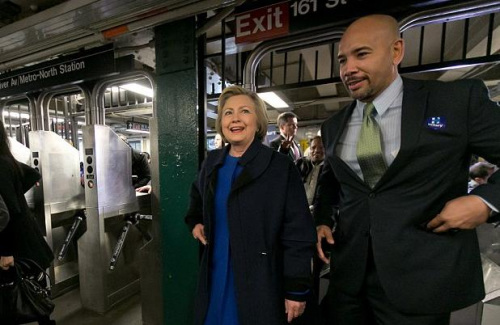 希拉里出现在地铁后,不少乘客也纷纷掏出手机拍照或者要求与其合影。不过也有不少乘客表现的很酷,认为这根本没什么,也并未太关注希拉里。