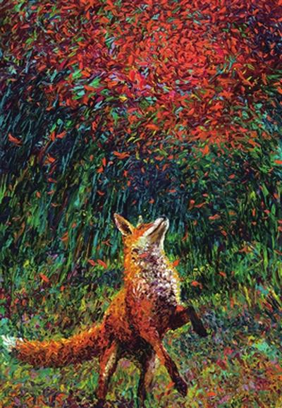 “我的手指和画布之间什么都没有,这种纯粹的感觉,是画笔永远无法给与的。每当我开始涂染,小时候在森林中遇到的一个个小生灵,就会跑出来跟我打招呼,这些美好而珍贵的记忆,在用画笔作画时却从没有过?!毕衷诘乃苁谴髯乓接媒浩な痔子檬种富嬷朴∠笈捎突髌贰6潭?年时间,IrisScott的手指画已经在世界范围内得到了人们的广泛赞誉。包括《旧金山环球》、COLOSSAL,以及向来十分苛刻的《美术艺术收藏者》杂志都对她的画作十分欣赏。而她的一幅小画更是飙涨到6500美元起,即便如此,也被她的上百万粉丝一抢而空。官网上画作的状态几乎全是SOLD。