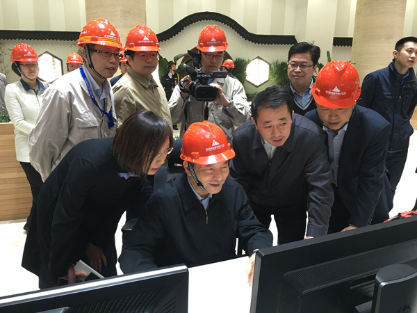 4月1日,民进中央常务副主席罗富和率调研组,就“推进煤炭清洁高效利用”赴神华国华北京燃气热电厂进行专题调研。图为罗富和考察主控制室。