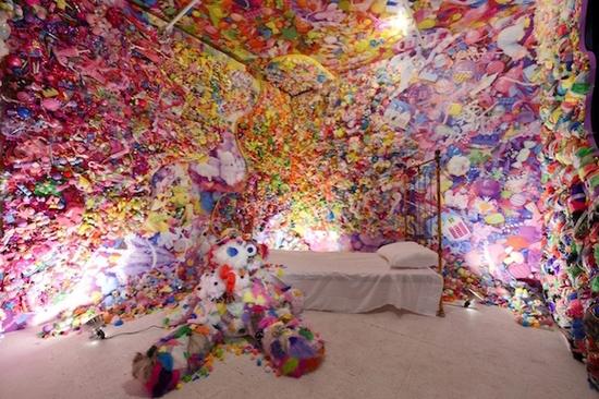 设计这家餐厅的设计师是日本艺术家 Sebastian Masuda 。他最擅长创作用丰富色彩做出的大幅艺术作品。此前,他曾在2014年于美国展开过一次巡回装置展览,具体画风如下。