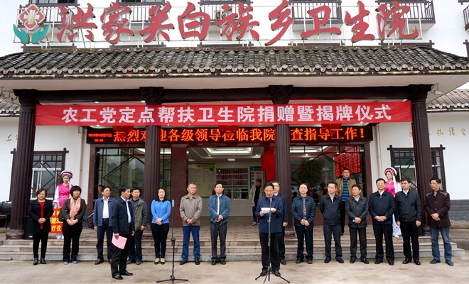 2016年4月7日上午,农工党中央副主席龚建明出席湖南省张家界市桑植县洪家关白族乡卫生院捐赠暨揭牌仪式,全面启动“同心圆工程”之一----农工党定点帮扶洪家关乡卫生院的工作。