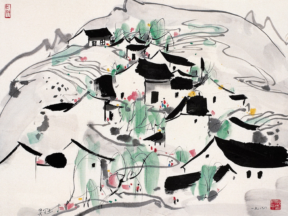 《周庄》贯通吴冠中风景油画和设色纸本两个序列