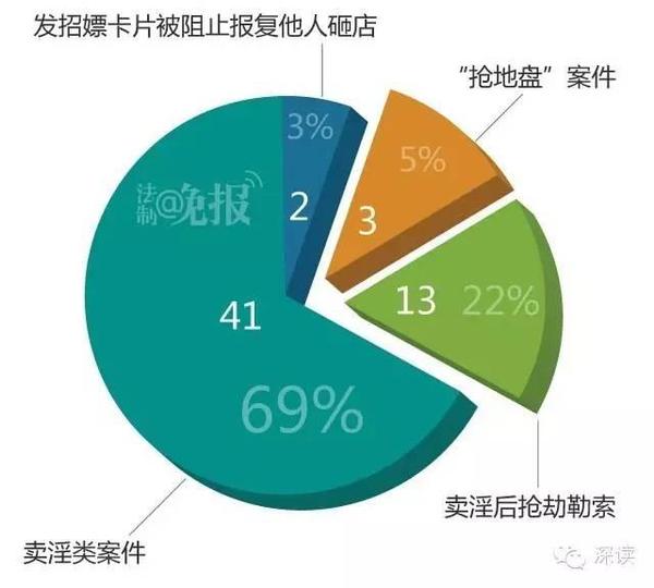数据分析结果显示,卖淫类刑事案件有41件,占69%。其中,犯罪分子通过发色情卡片的方式招嫖的案件29件,占71%。