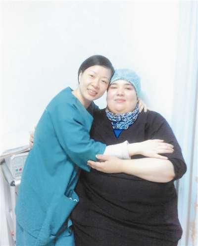郭璐萍与曾救治过的患者、突尼斯妇女吉翰拥抱在一起。(资料图片)