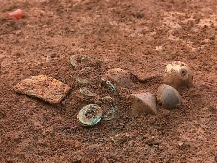 4月7日,钟山县文物管理所通报,初步认定该墓为东汉晚期墓,距今1800年左右,已出土玛瑙耳铛、陶釜、陶罐、纺轮、铜碗、铜钱、铜镜等30余件文物。