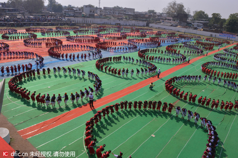 印度3千学生跳集体舞创世界纪录 场面相当壮观