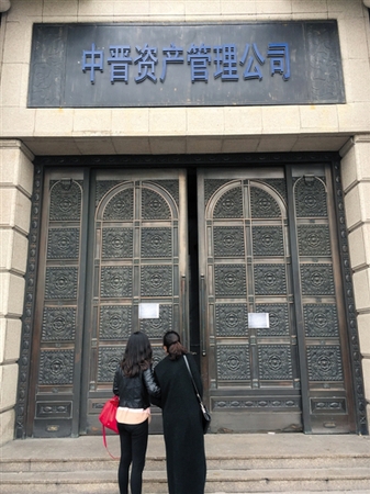 4月7日,百亿中晋系崩盘,中晋资产管理公司外滩中晋总部聚集着投资人。图/东方IC