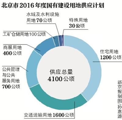 新京报讯 (记者马力 赵实)北京市政府常务会近日审议通过的《北京市2016年度国有建设用地供应计划》显示,2016年,北京市国有建设用地计划供应总量4100公顷,相比2015年有所下降,但住宅用地安排的1200公顷仍与去年持平,其中的保障性安居工程用地减少100公顷,商品住宅用地则增加100公顷。另外,今年城六区的土地供应量不高于全市土地供应总量的20%,北京市副中心建设用地供给将加快。