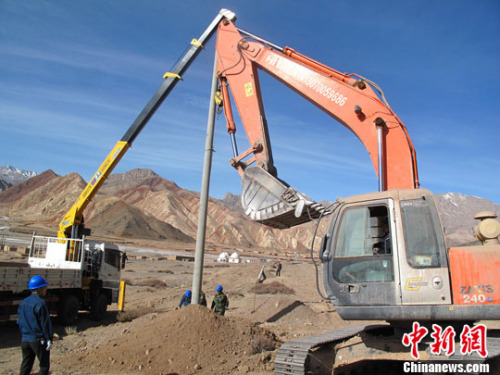 资料图。图为新疆乌恰县托云配网建设工程在帕米尔高原上开工
