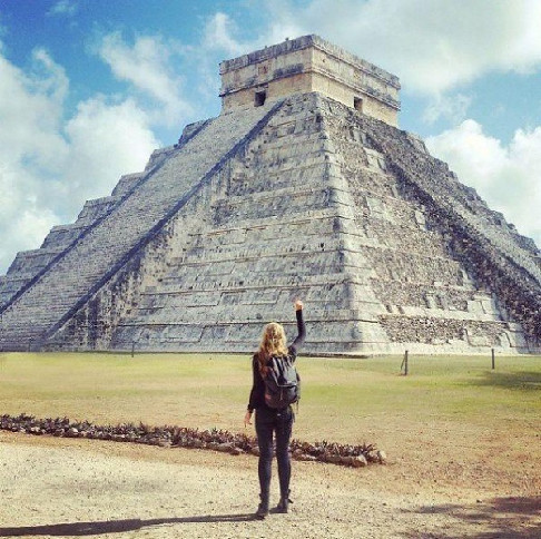 这是她旅行第一天在墨西哥玛雅金字塔的照片