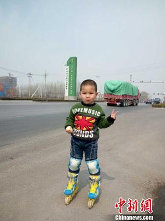 河南父子轮滑到北京历时14天 儿子仅4岁