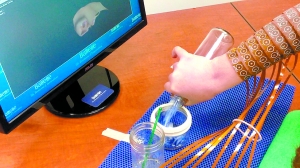 在电脑芯片的帮助下,伯克哈特可以用右手握住一个瓶、把瓶内的东西倒进一个罐子、拿起棍子搅拌液体。