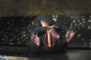 如果你觉得看《哈利·波特》里面的怪物还没有过瘾,那么《神奇动物在哪里》肯定会弥补这个遗憾。只是第一版预告片显然为了卖关子,很少展示动物本身,目前我们看到了一种藏在手提箱里的尖爪生物,唯一可以辨识的生物——“嗅嗅”(Niffler),这是一种长得像鼹鼠,喜欢抱住闪光的珠宝不放的小动物,它曾出现在《哈利·波特与火焰杯》里;还有一种蓝色的鸟状生物,叫做“Swooping Evil”,原书中并未收录。