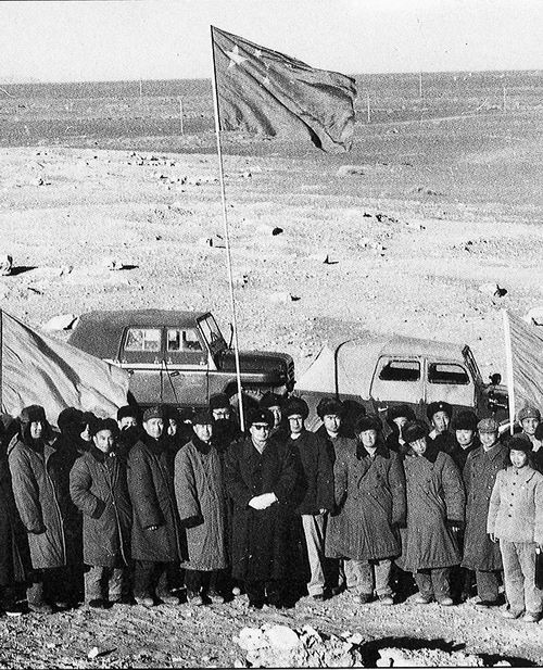 1966年“两弹结合”成功后,梁思礼(左二)与聂荣臻(左五)、钱学森(左四)等在发射现场合影。