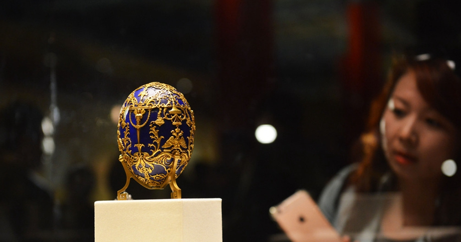 昨日,“俄罗斯皇家法贝热装饰艺术展”在故宫午门东雁翅楼展厅开放。图/CFP