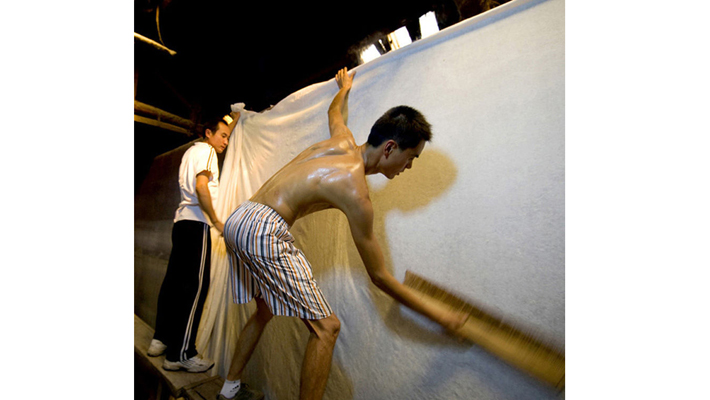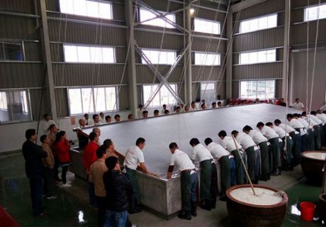 据悉,此张宣纸于2015年11月11日在位于“中国宣纸之乡”泾县的中国宣纸股份有限公司生产,由近百名技艺精湛的捞纸、晒纸、剪纸工人共同抄制而成, 是迄今世界上最大的宣纸乃至手工纸,主要适用于大型宾馆、楼堂馆所创作巨幅书画艺术作品之用,它的成功问世,在传承与发展宣纸技艺历史中具有里程碑的作 用。(钱娟 陈晓兵)