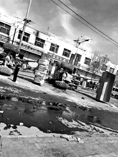 行唐县“铲车大战”中多辆铲车被掀翻,现场洒满漏出的柴油