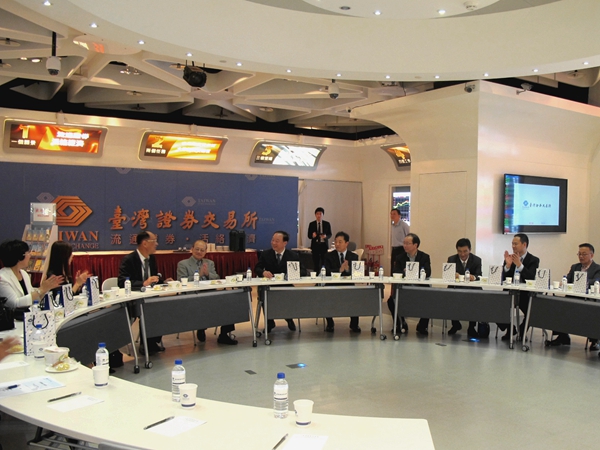 研讨会后,访问团分别前往台湾证券交易所和台湾证券柜台买卖交易中心进行调研,就完善多层次资本市场,便利中小企业融资等问题进行了深入交流。台湾证券交易所,管理完善,经营稳健,多年保持较高利润率,在全球证交所中名列前茅。台湾证券柜台买卖交易中心建立了创柜、兴柜、上柜的多层次资本市场,为台湾中小企业特别是科技企业提供了完善的融资渠道。访问团认为,台湾证券市场经过多年发展,形成了比较稳定和成熟的多层次资本市场,非常值得大陆学习借鉴。