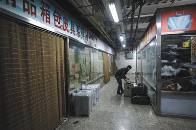 市场内,一名商户正在打包自己的商品,目前市场内顾客较少,一些生意不佳的店面已经关门转做库房。新京报记者 彭子洋 摄