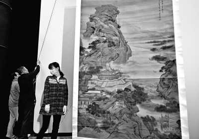 昨天,首都博物馆书画专家叶渡为观众导赏文物“骊山避暑图”。