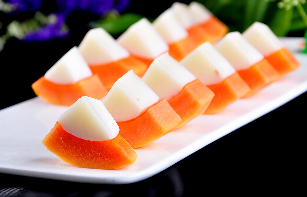 功效:木瓜拥有多种维他命B群、胡萝卜素等营养,加上所含的特殊蛋白酶,能够快速吸收鲜奶中的蛋白质。而蛋白质可以促进肌肤新陈代谢正常,保持弹性,提供抗老化、抗氧化的全面性功能。