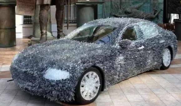 乍看上去,还以为车上长满白毛,其实都是玻璃碴。这些插满车身的玻璃的总重达到了8千克,如果您在街上看到了这样的车,你会伸出手去摸摸吗?分分钟告诉你什么是白手去,红手回。
