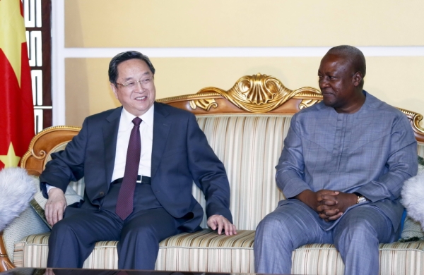 这是4月18日,俞正声在阿克拉会见加纳总统马哈马。新华社记者鞠鹏摄