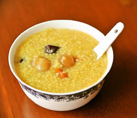 常喝小米粥可以补充人体多种维生素、氨基酸与纤维素,而且能缓解精神压力。小米粥可单独煮熬,亦可添加大枣、红豆、红薯、莲子、百合等,熬成风味各异的营养品。小米能够镇静安眠,对于那些因胃肠不好导致的失眠,效比安眠药。