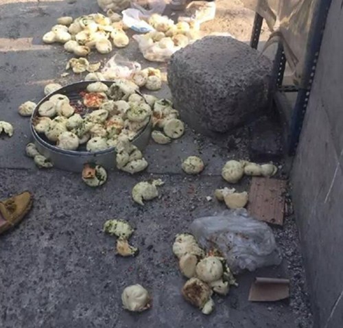 关键词:小贩拿错包子馅 男子怒踩一屉包子