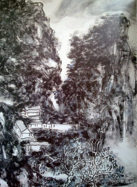 黄宾虹绘画中常用水,由于创作时妙于用水,使其作品达到水墨神化效果,并总结出一套水和墨结合方法,使他成为近代中国山水画用水于画的第一人。图三是他专门论述用水心得,从图四中可见其用水作品的神韵.