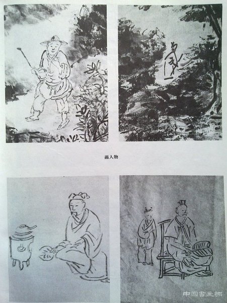 在研究山水画的同时,黄宾虹先生对人物画法也有很高超表现能力,他曾讲到:“画人物最要者有三:要有神气;要有分别;要能化?!比宋镌谏剿?与山水云树相处,要能融入自然,不能超出自然环境。他表现人物的基本形态,如图七和图八。
