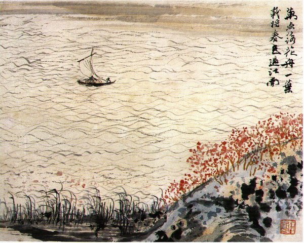 陆俨少(1909年-1993年),现代画家。又名砥,字宛若,上海嘉定县南翔镇人。1926年考入无锡美术专科学校,1927年考入无锡美专学习,同年从王同愈学习诗文、书法;次年师从冯超然学画,并结识吴湖帆,遍游南北胜地。1956年任上海中国画院画师。1962年起兼课于浙江美术学院,1980年在该院正式执教,并任浙江画院院长。擅画山水,尤善于发挥用笔效能,以笔尖、笔肚、笔根等的不同运用来表现自然山川的不同变化。线条疏秀流畅,刚柔相济。云水为其绝诣,有雄秀跌宕之概。勾云勾水,烟波浩淼,云蒸雾霭,变化无穷,并创大块留白、墨块之法。兼作人物、花卉,书法亦独创一格。