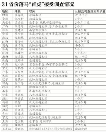 记者盘点31位地方“首虎”从接受纪委调查到进入司法程序的时间,发现长短不一。如李春城从接受纪委调查到案件立案侦查,时间最长近17个月;最终被认定犯玩忽职守罪的童名谦,仅接受纪委半个月调查就被移交司法机关。