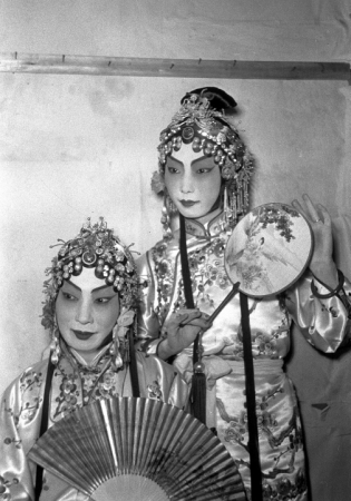 这是1950年1月15日,梅兰芳(左)、梅葆玖父子在上海同台演出“游园惊梦”(资料照片)。新华社发