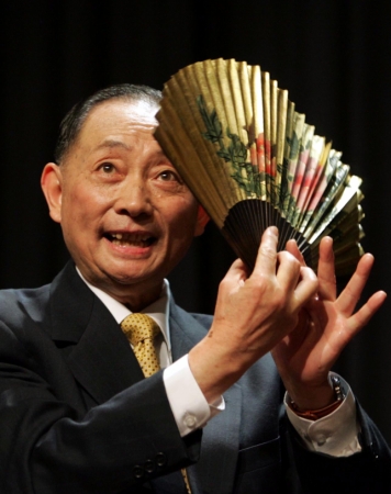 这是2005年11月15日,在法国巴黎阿迪亚尔剧场,梅葆玖在法国巴黎第二届中国戏曲节闭幕式上表演京剧名段《贵妃醉酒》。新华社记者宋立东摄