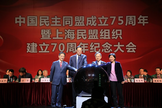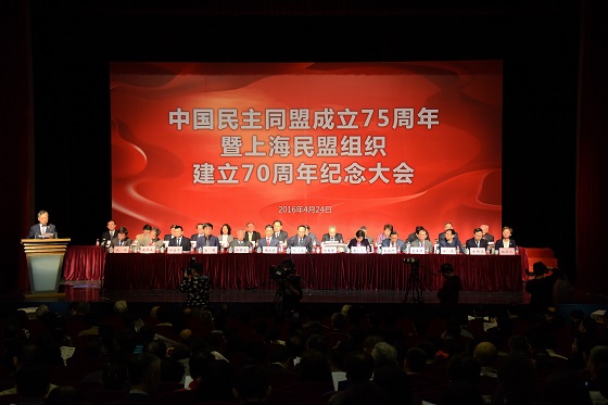 2016年4月24日,民盟上海市委在上海戏剧学院隆重集会,纪念民盟成立75周年暨上海民盟组织建立70周年。全国人大常委会副委员长、民盟中央主席张宝文出席大会并讲话。民盟中央副主席、上海市人大常委会副主任、民盟上海市委主委?;萸孔鞔蠡嶂魈獗ǜ妗I虾J姓敝飨?、民建上海市委主委周汉民代表各民主党派、工商联致贺辞。中共上海市委统战部副部长虞丽娟到会致贺辞。民盟中央原副主席、同济大学原校长江景波,民盟中央原副主席、民盟上海市委原主委张圣坤等老同志参加大会。纪念活动由民盟上海市委专职副主委沈志刚主持。