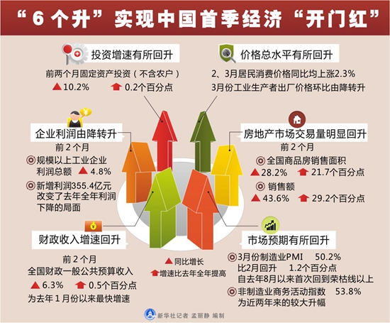 实际情况如何呢?今年一季度中国经济“成绩单”已经出炉。在国家统计局公布的1-3月宏观经济数据中,多项指标明显反弹。一季度,国内生产总值同比增长6.7%,继续保持中高速发展,在世界范围内名列前茅。固定资产投资同比增长10.7%,实现2015年以来首个连续回升。全国城镇新增就业318万人,全国居民人均可支配收入增长6.5%……中国经济运行出现了筑底企稳迹象,释放出“回暖”的积极信号。