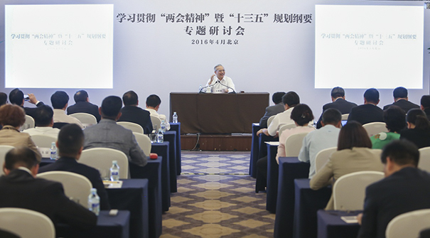 4月25日,中国民生投资股份有限公司在京举办学习贯彻全国两会精神暨“十三五”规划纲要专题研讨会。全国政协副主席、全国工商联主席王钦敏同志出席会议,并就学习贯彻习近平总书记在全国政协十二届四次会议民建、工商联联组会上的重要讲话精神作辅导报告?;嵋榛寡牍曳⒏奈医舛凉摇笆濉惫婊僖?。全国工商联副主席史贵禄、孙荫环、何俊明、张建宏、茅永红、董文标等中民投股东、高管,以及被投公司高管、亚洲金融合作联盟部分会员单位负责人等数十位民营企业家、金融界人士参加了会议?;嵋橛芍忻裢蹲懿美罨痴渲鞒?。