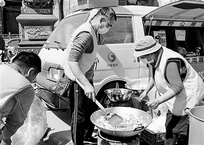 爱心人士在台南维冠金龙大楼倒塌现场为救援人员准备饭菜。