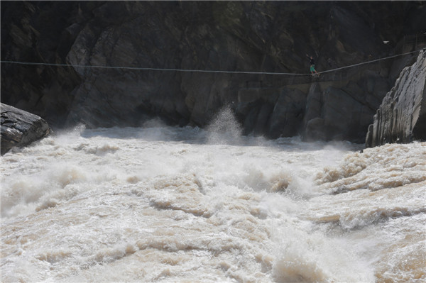 通过和张亮的聊天,我知道了走扁带也有叫走绳,英文名Slackline,即行走于固定在两点之间的扁带之上,保持身体平衡,甚至完成各种技巧动作的新运动。它是由国外的登山者在走钢丝运动的基础上开创出来的。Slackline使用的绳索一般为25mm宽、3mm厚的尼龙扁带。它可以作为攀岩者的训练项目,用来提高攀登平衡技术,是一项独立的极具挑战的平衡运动。