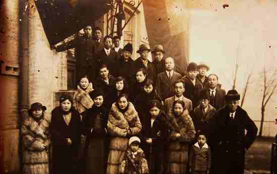 访苏成员的合影,第三排右二戴帽者为梅兰芳。