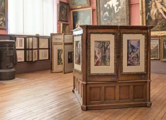闷热的房间让人不舒服, 我挤过黑人看守人高大的身躯, 逃跑式地赶快继续往楼上走,然后是一个突如其来的震惊。一个巨大的像教堂一样高阔的空间出现在眼前, 从屋顶到地面, 密密地挂满了画, 巨幅的,未完成,小幅的素描和水彩,被莫罗装在玻璃里,像书页一样固定在墙上,供人一页页翻看。14000件收藏,1200件油画,5000幅水彩和素描,完成的,未完成的,莫罗将自己完全打开展现在了参观者的面前。
